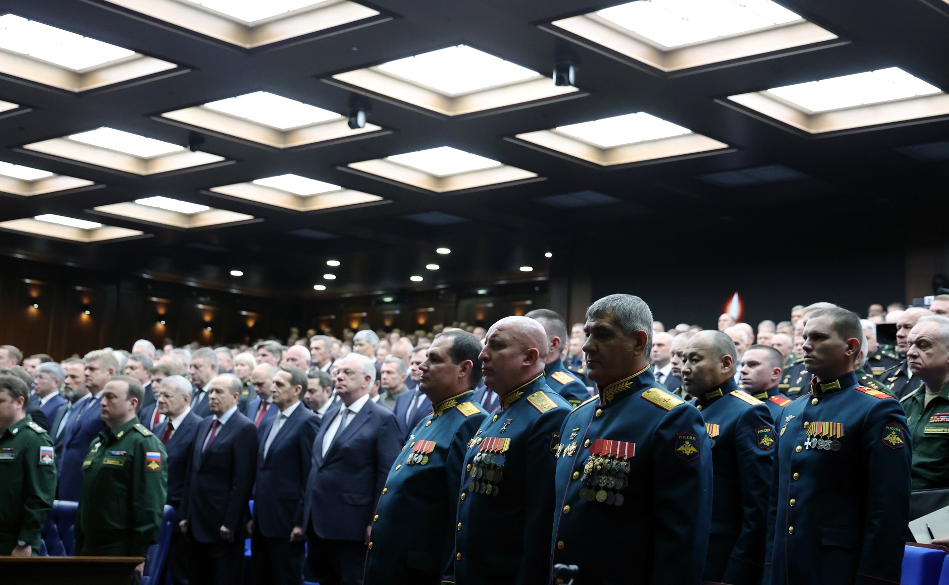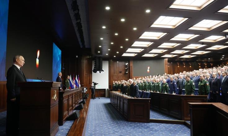 Обращаясь к собравшимся, Владимир Путин отметил, что уходящий год стал важным этапом в решении задач специальной военной операции. Российская армия завоевала и прочно удерживает стратегическую инициативу на всей линии фронта.