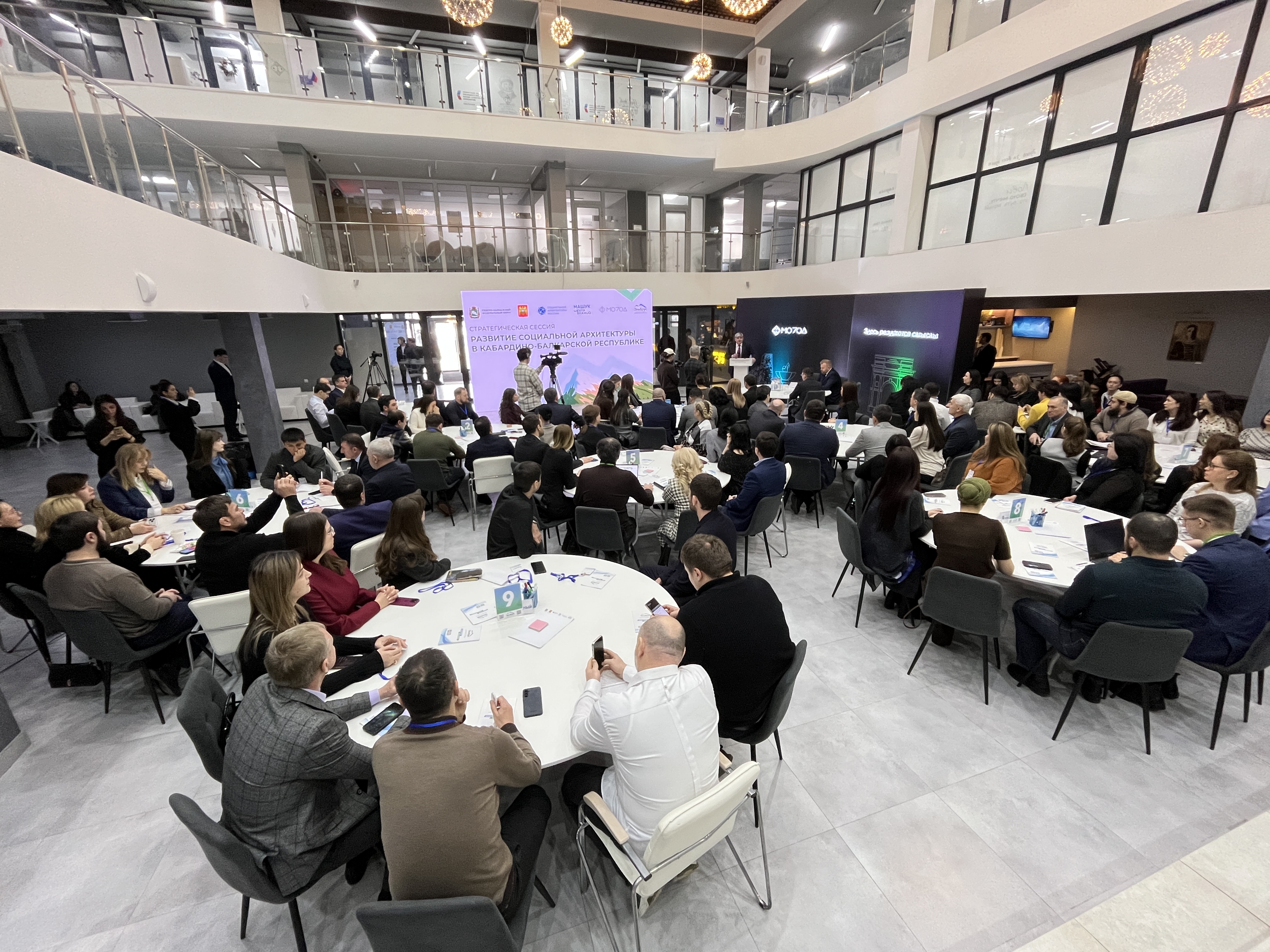 В рамках стратегической сессии участники рассмотрели ключевые социальные вызовы, с которыми сталкивается Кабардино-Балкария. Среди них развитие моногородов, вопросы туризма и индустрии гостеприимства, гармонизация межнациональных отношений. В дискуссии активно участвовала молодёжь: лидеры НКО, студенты и волонтеры становятся полноценными соавторами проектируемых решений.